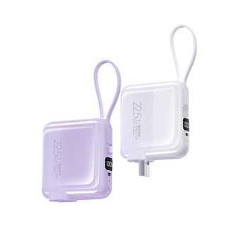 Factory Wholesale 10000mAh Capacity Mini Power Bank PD 22.5W Fast Charging Power Banks Built-In Type-C Portable Charger Cable